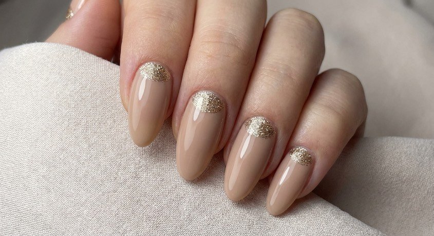Flip the traditional design by creating a sparkling half-moon at the nail base instead of tips. Use fine glitter or metallic polish for the reverse French element. This unexpected twist maintains sophistication while offering something unique.